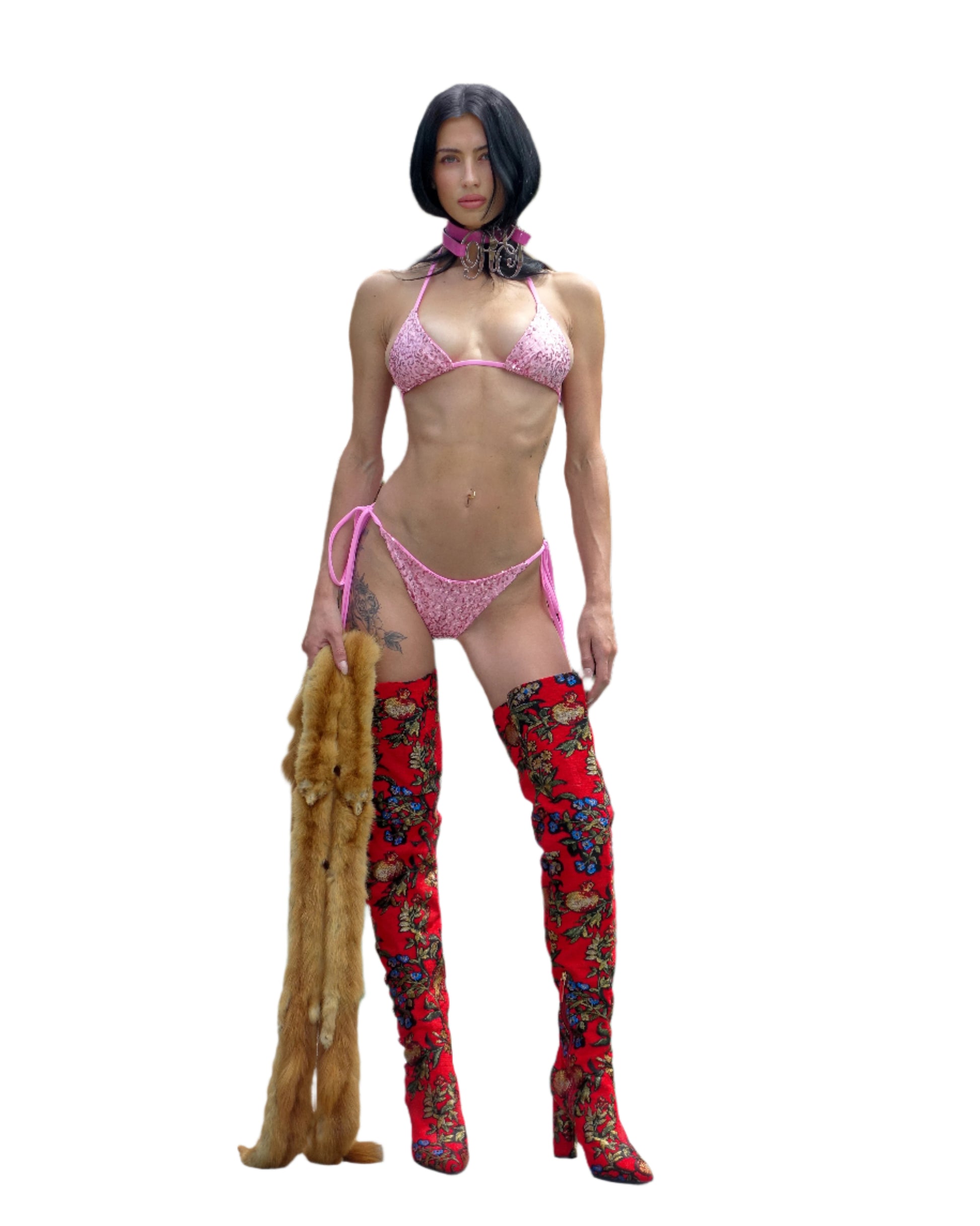 - Pink sequin lycra, pink lining