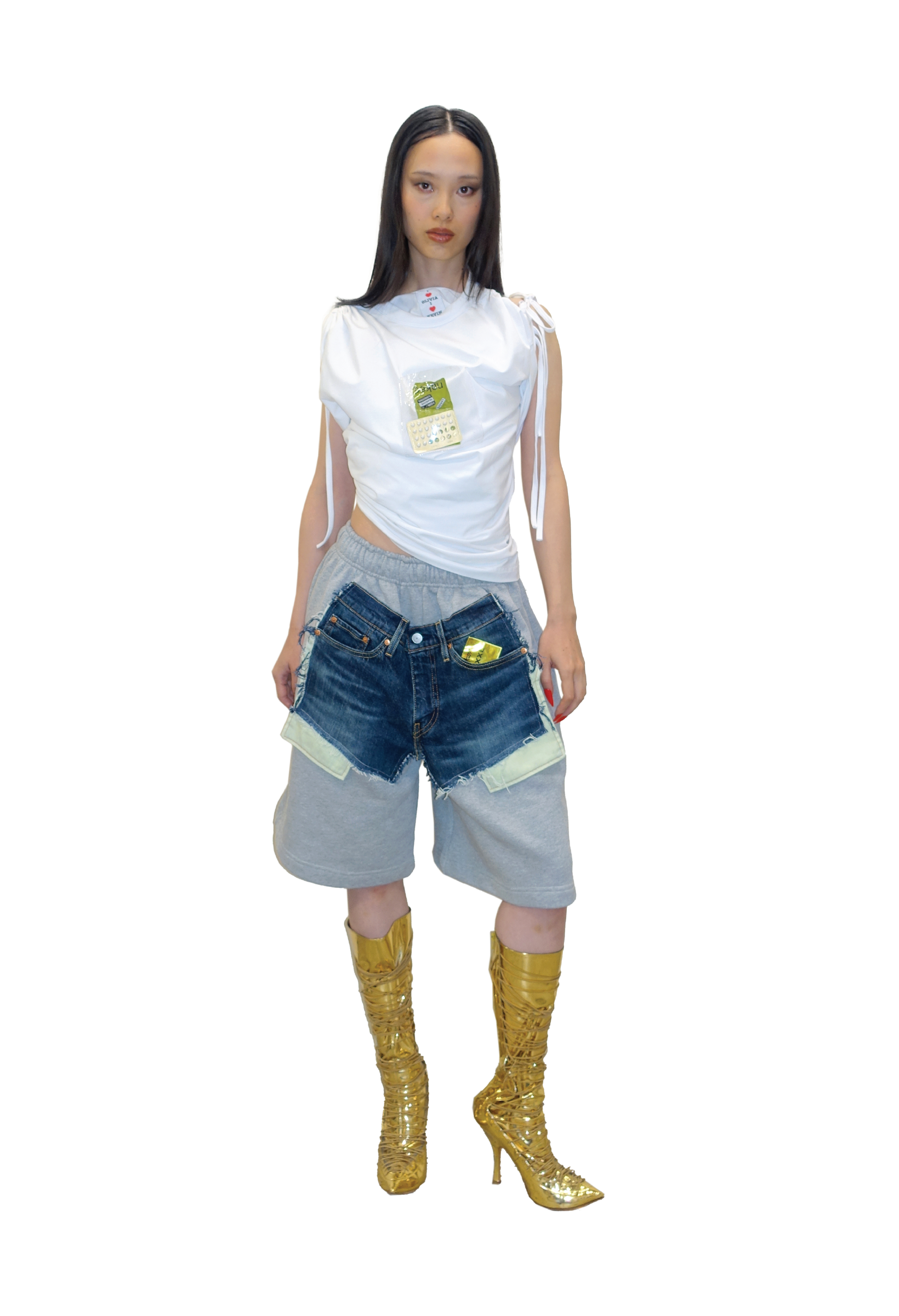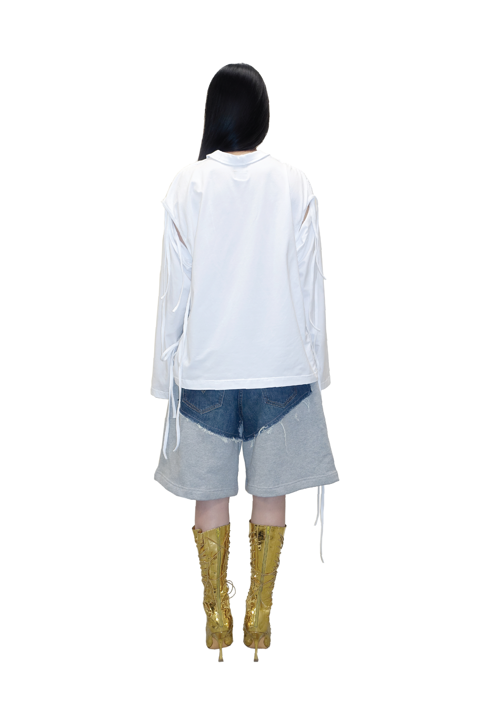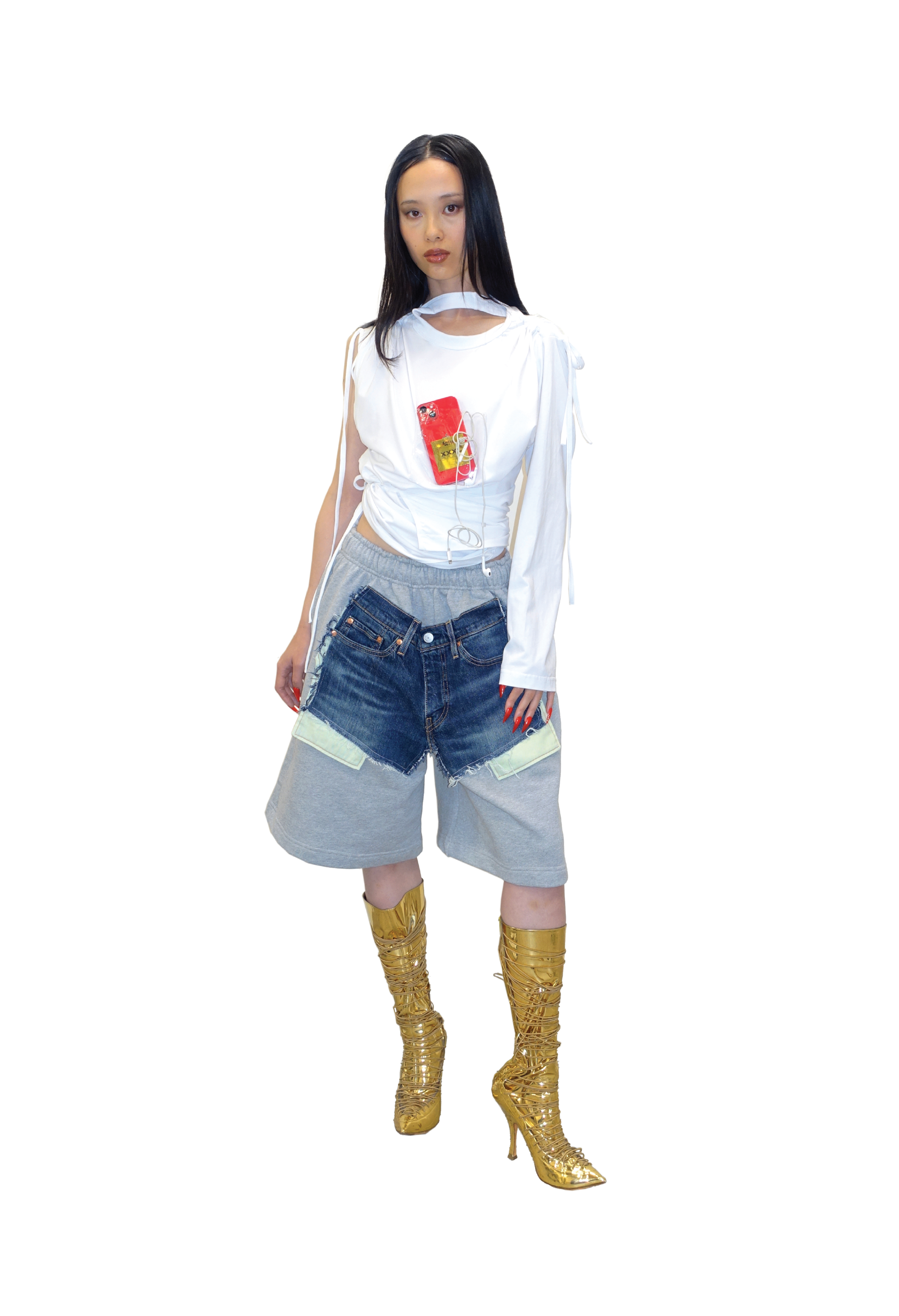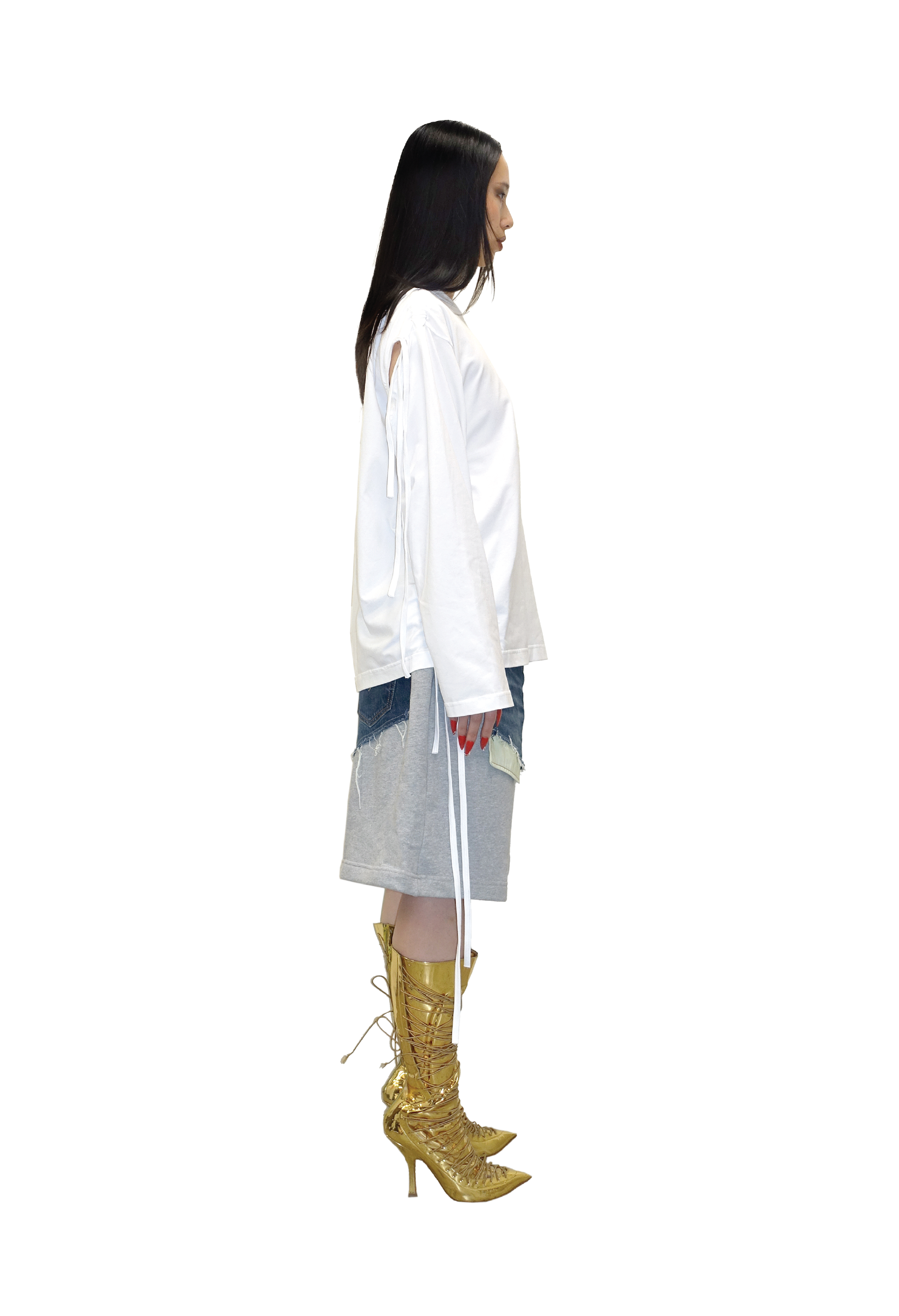 - double collar, adjustable ruching, and cutouts at the seams for versatile styling options