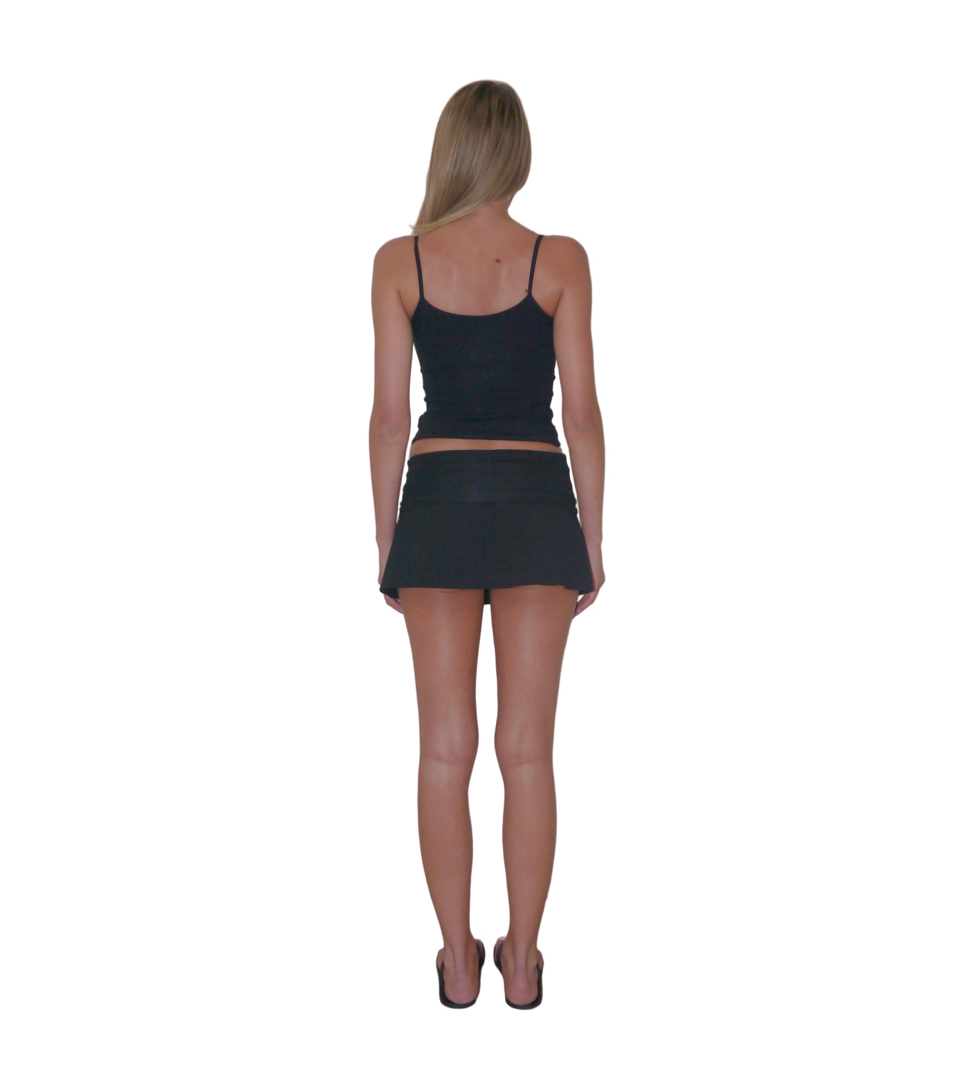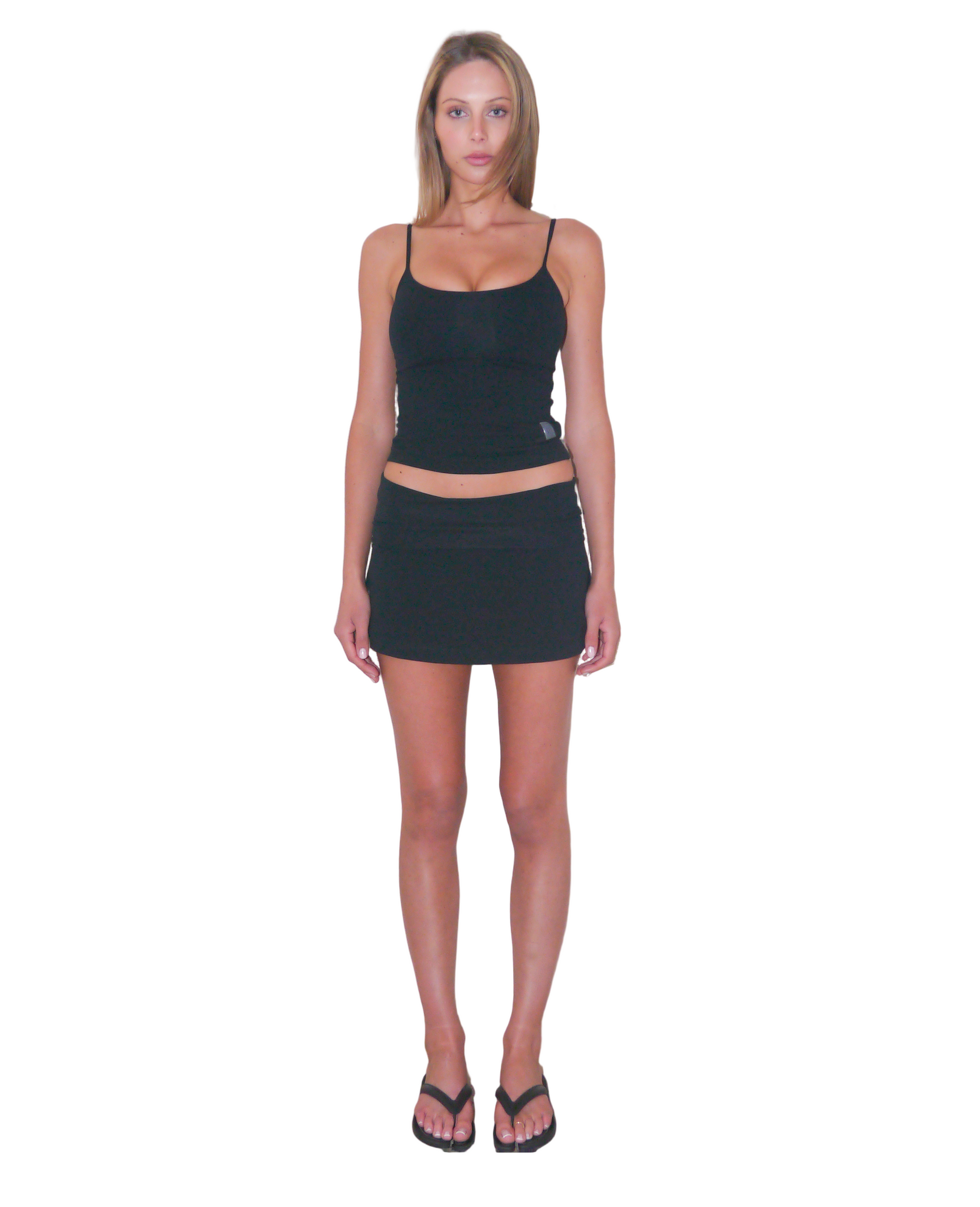 Compression style spaghetti strap tank. Crafted from double-layered 240gsm cotton stretch, designed to be worn without a bra. The fabric offers natural lift, with elastic inserted into the neckline for secure support and no spillage. Finished with a rubber OR logo detail.