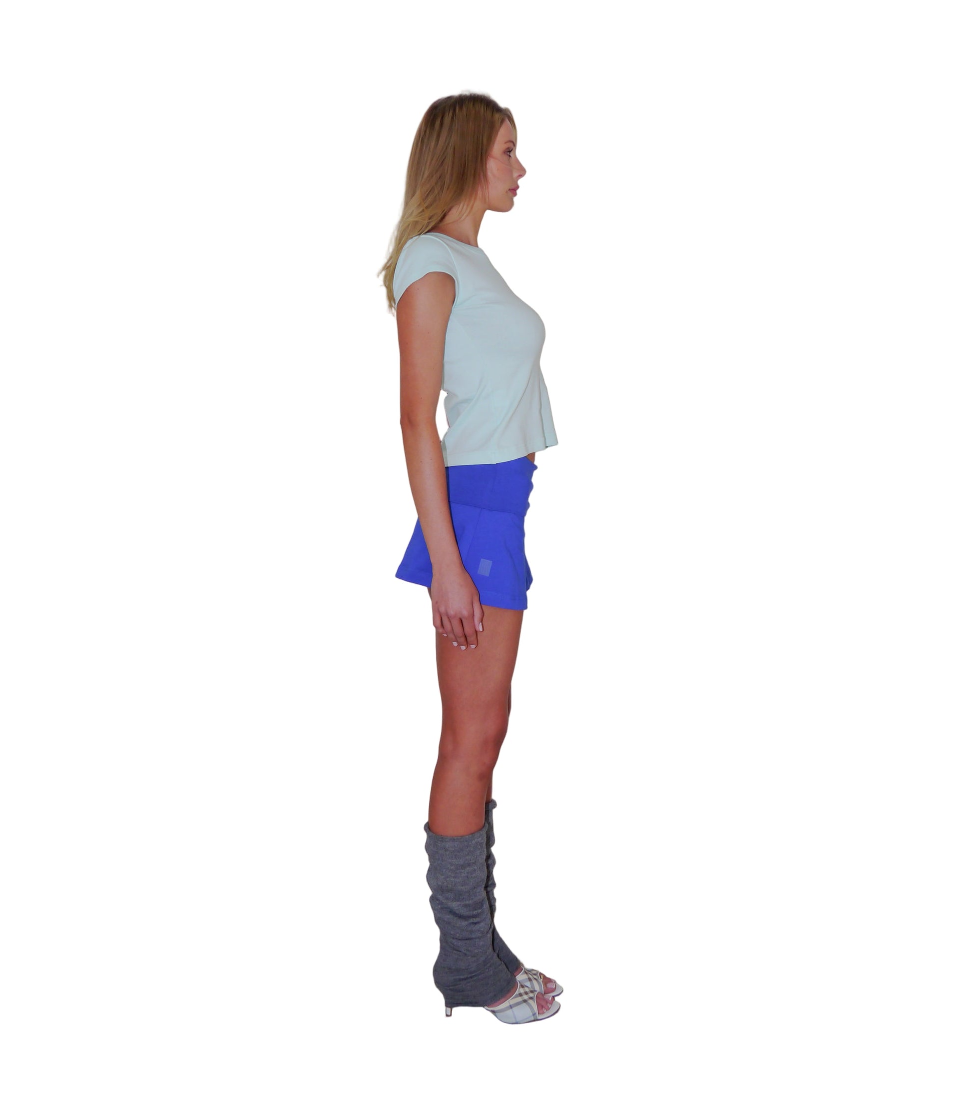 Folded mini skirt with built-in Shorts. Crafted from 240gsm cotton stretch for ulti- mate comfort and movement. This low-rise mini skirt features a folded waistband and attached shorts underneath for ease and coverage. Finished with a rubber OR logo detail.