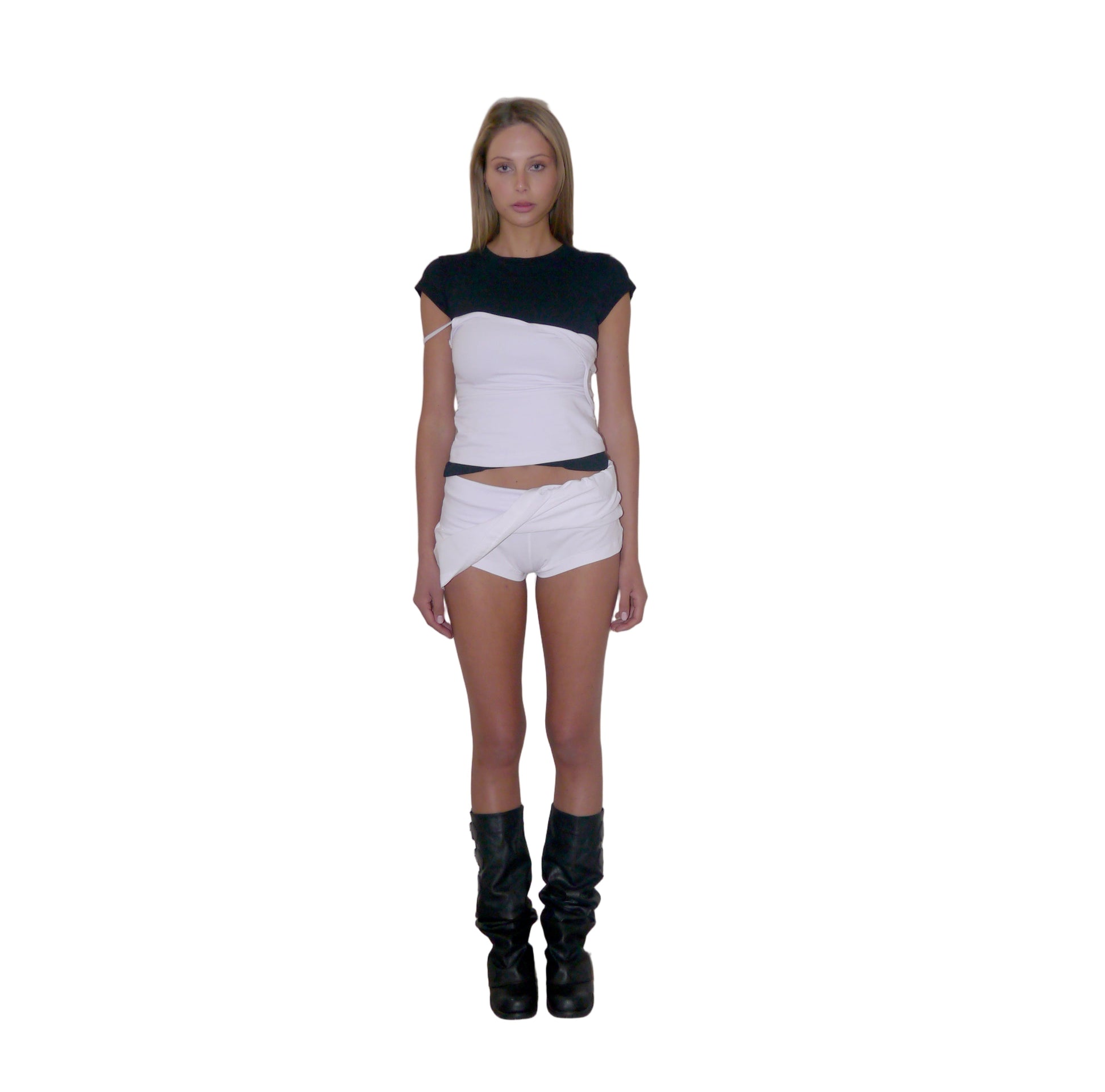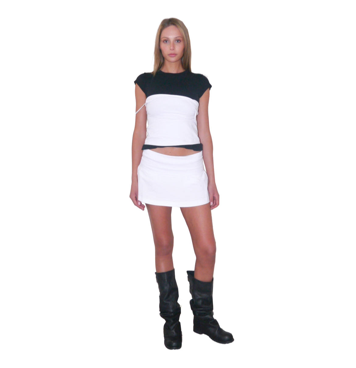 Folded mini skirt with built-in Shorts. Crafted from 240gsm cotton stretch for ulti- mate comfort and movement. This low-rise mini skirt features a folded waistband and attached shorts underneath for ease and coverage. Finished with a rubber OR logo detail.